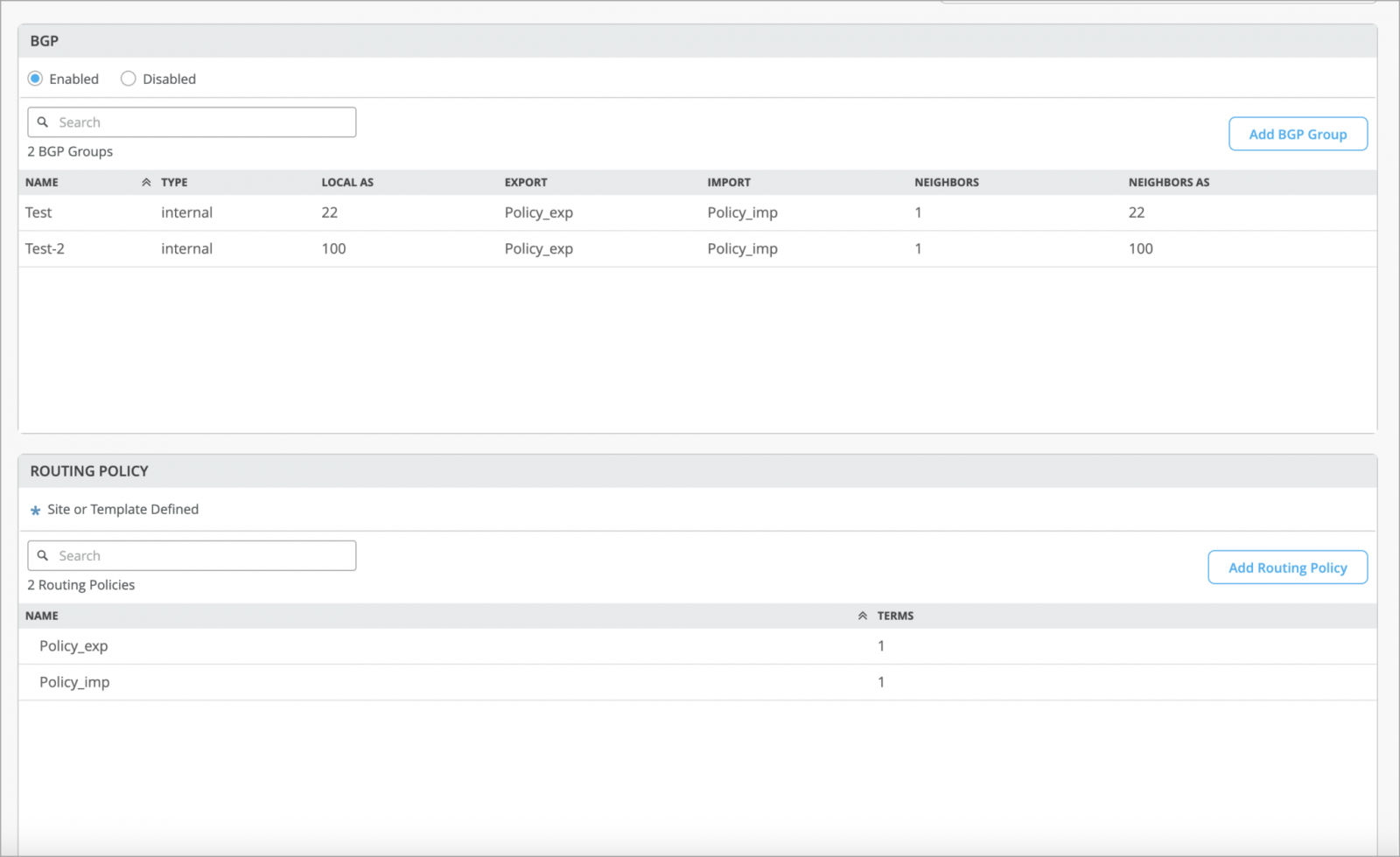 Previously, you had to configure routing policies per device inside the BGP protocol tab on the switch detail page.